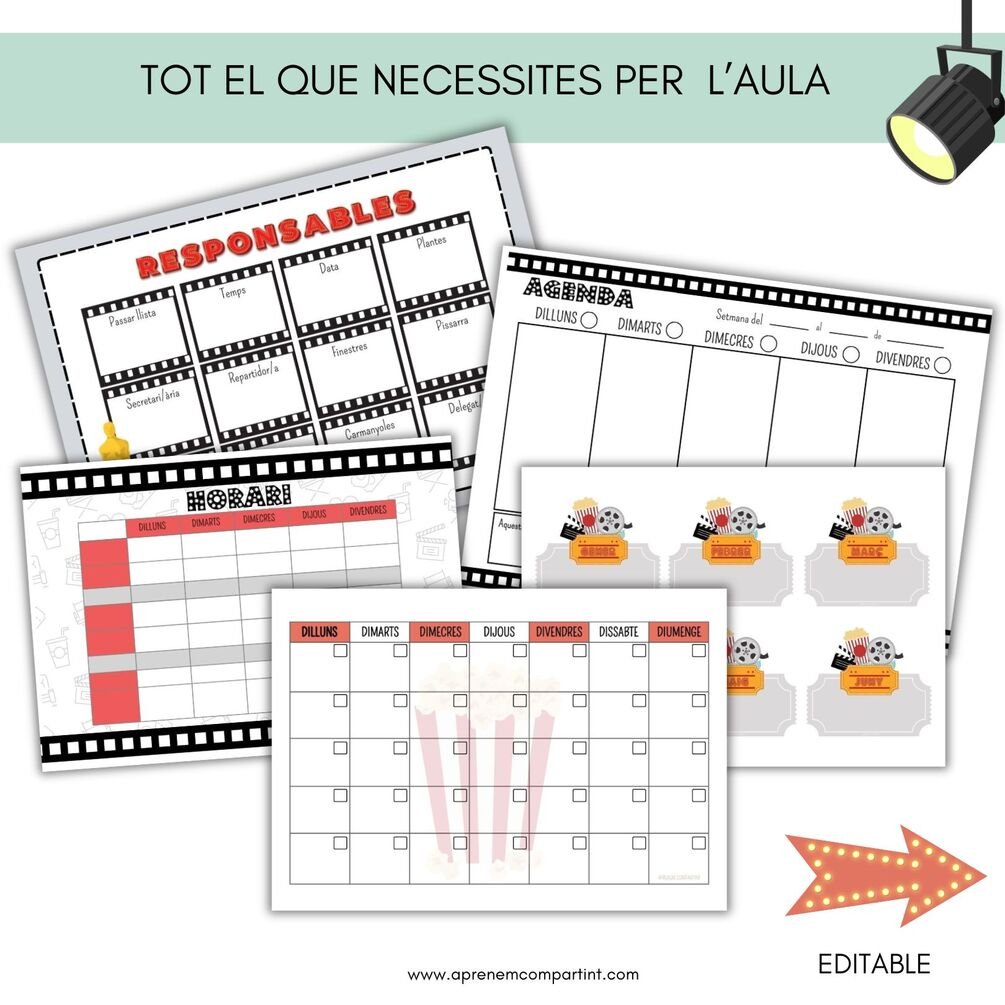 He preparat aquest material de decoració amb temàtica de cinema, perfecte per ambientar l’espai d’una manera original i motivadora i poder treballar aquesta temàtica com a fil conductor.
