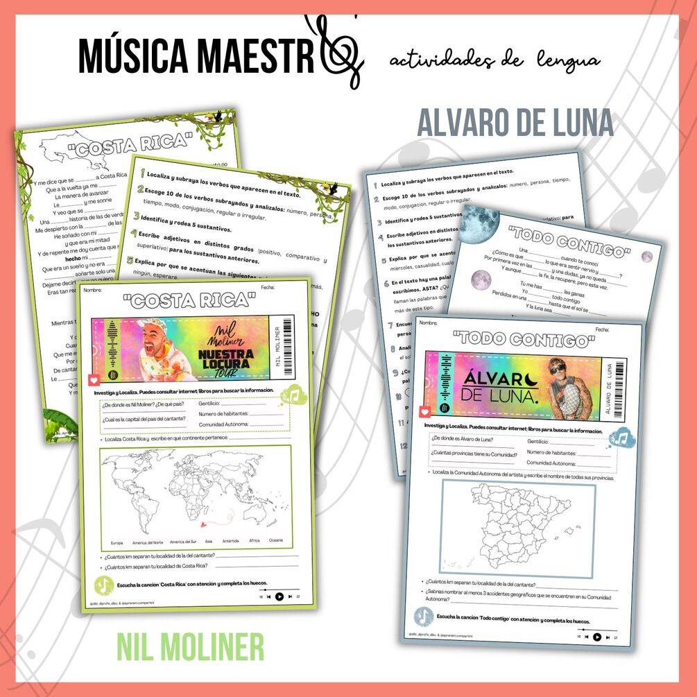 Junto con Silvia @dibi_diprofe_dibu, hemos creado este dosier con 12 canciones, para ciclo superior y poder repasar de una forma más dinámica y entretenida. Mira todo lo que puedes trabajar: